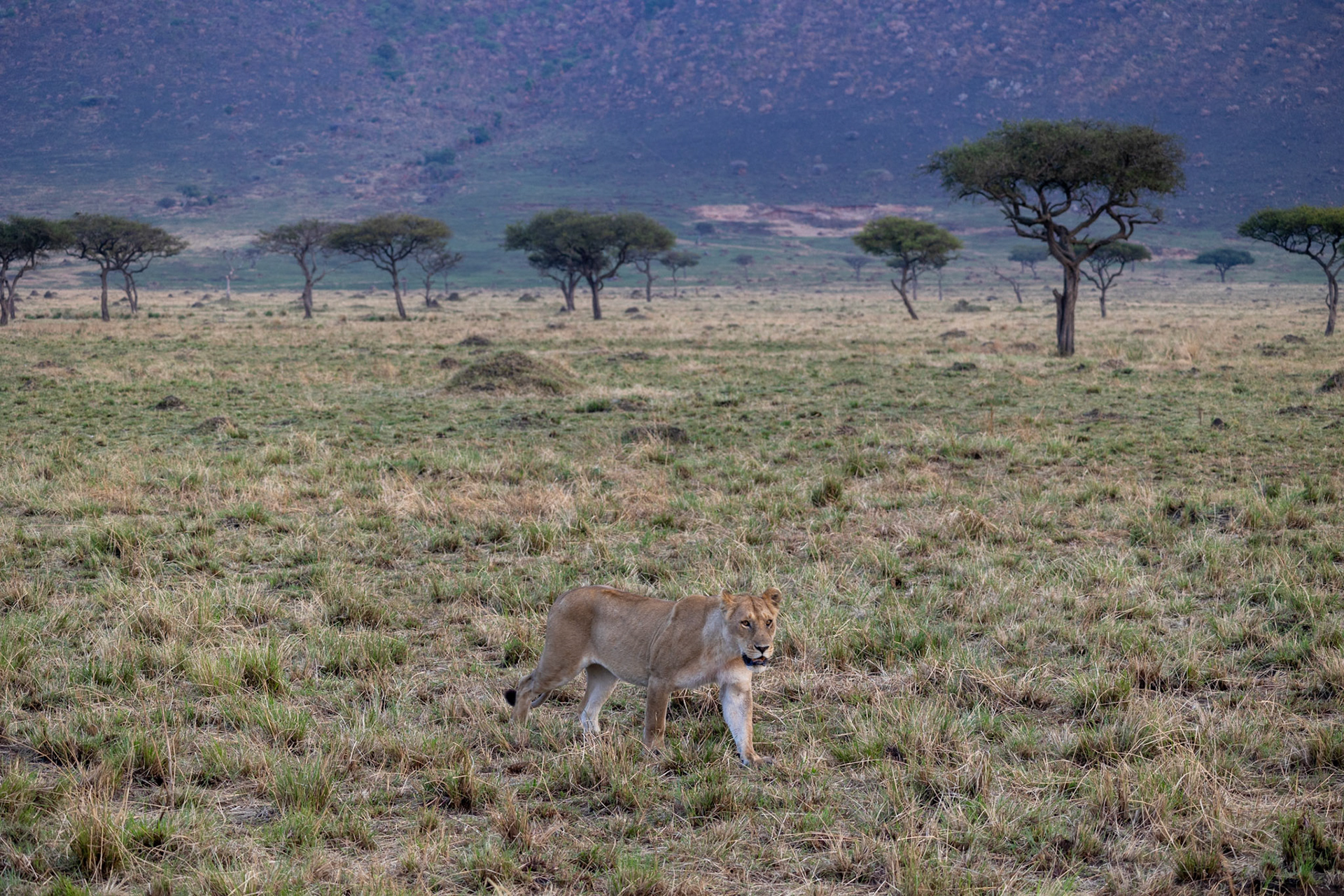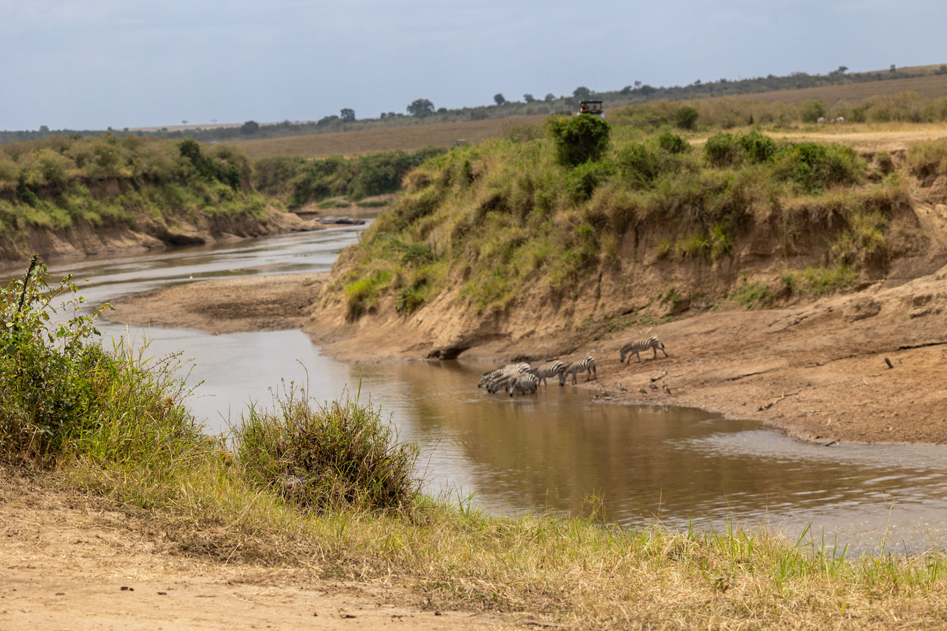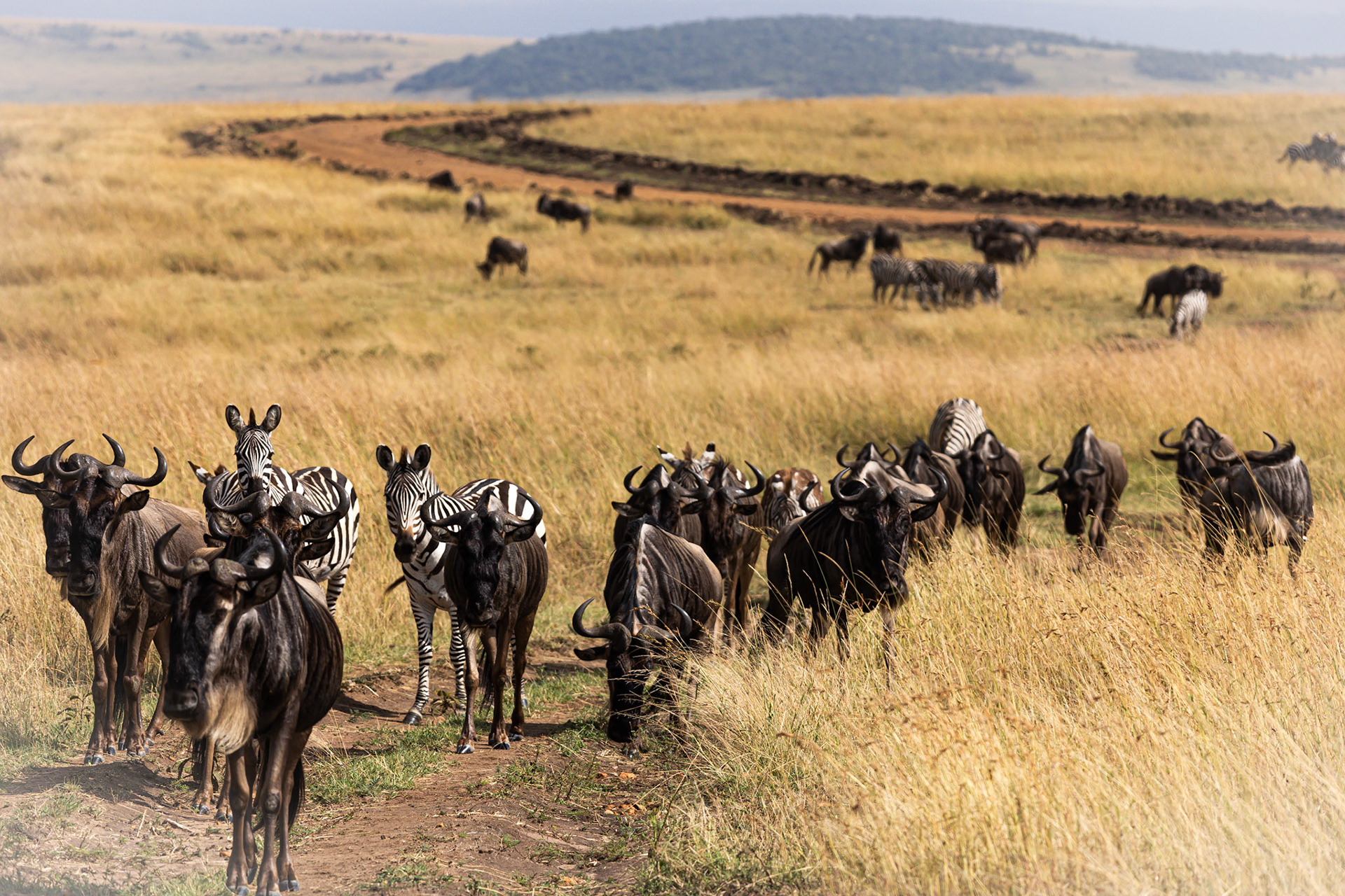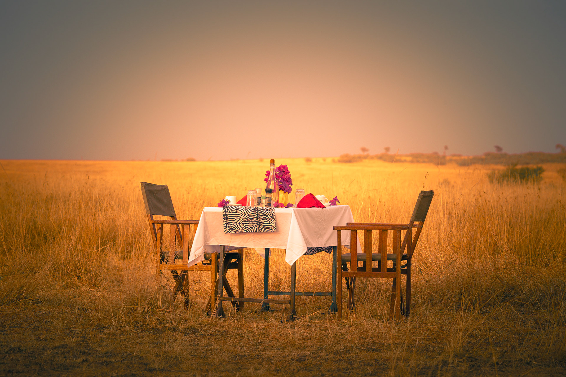 Endless horizons in Maasai Mara with a special mother and baby giraffe moment captured in its vastness.