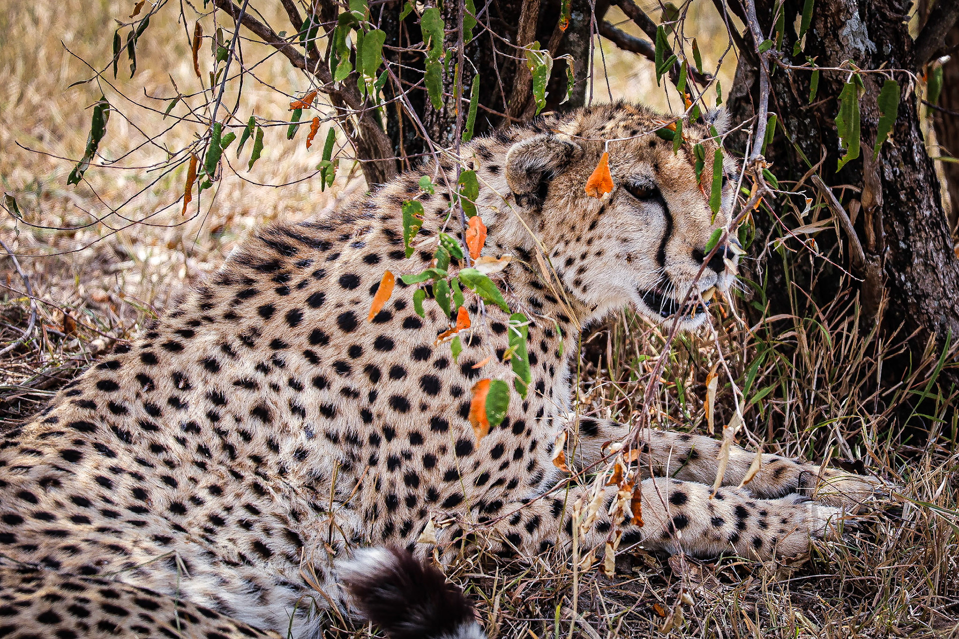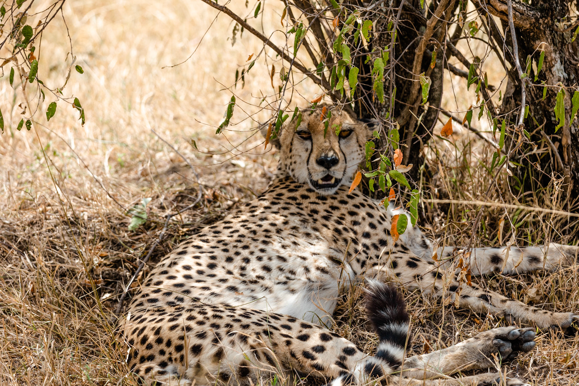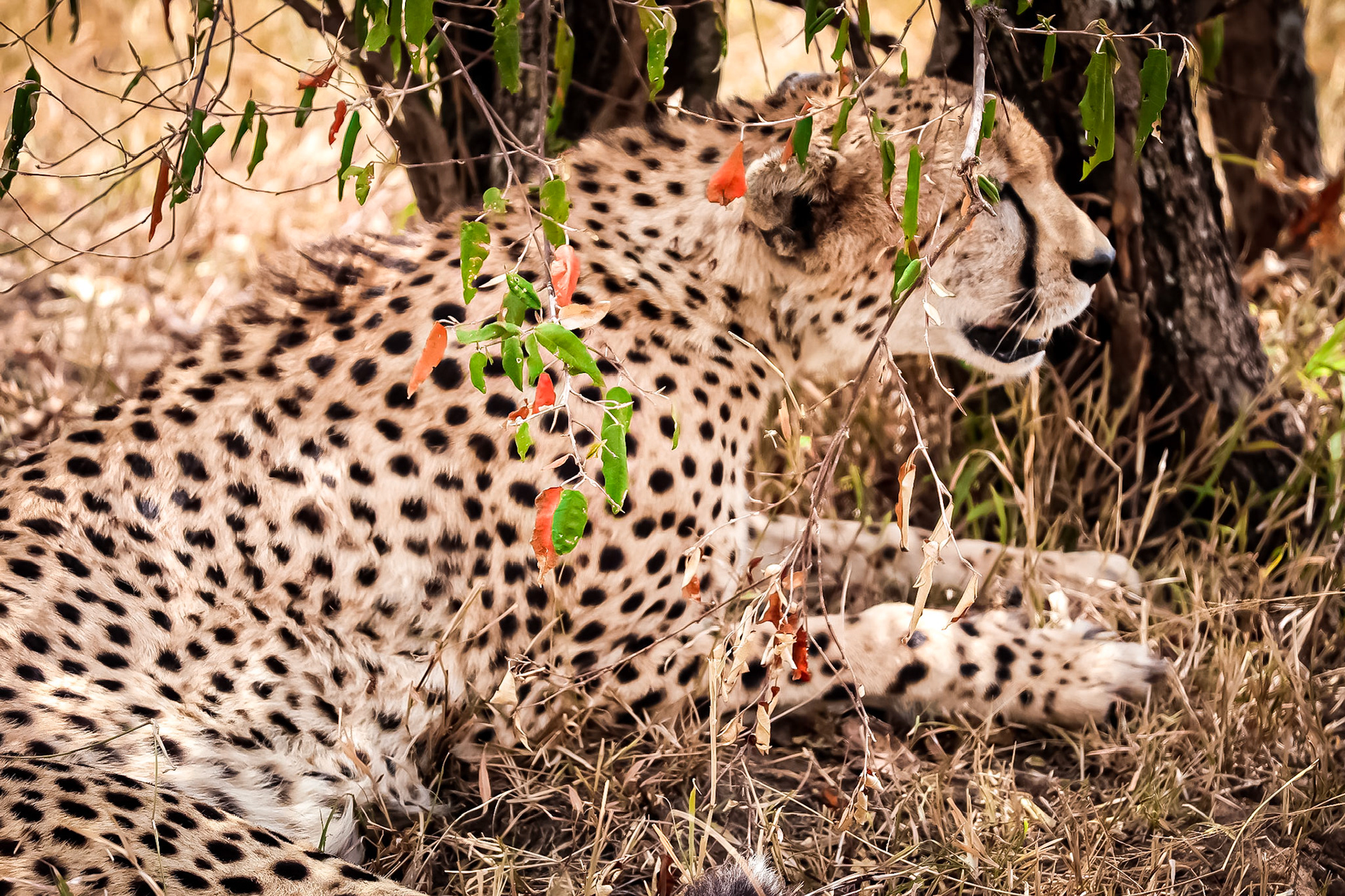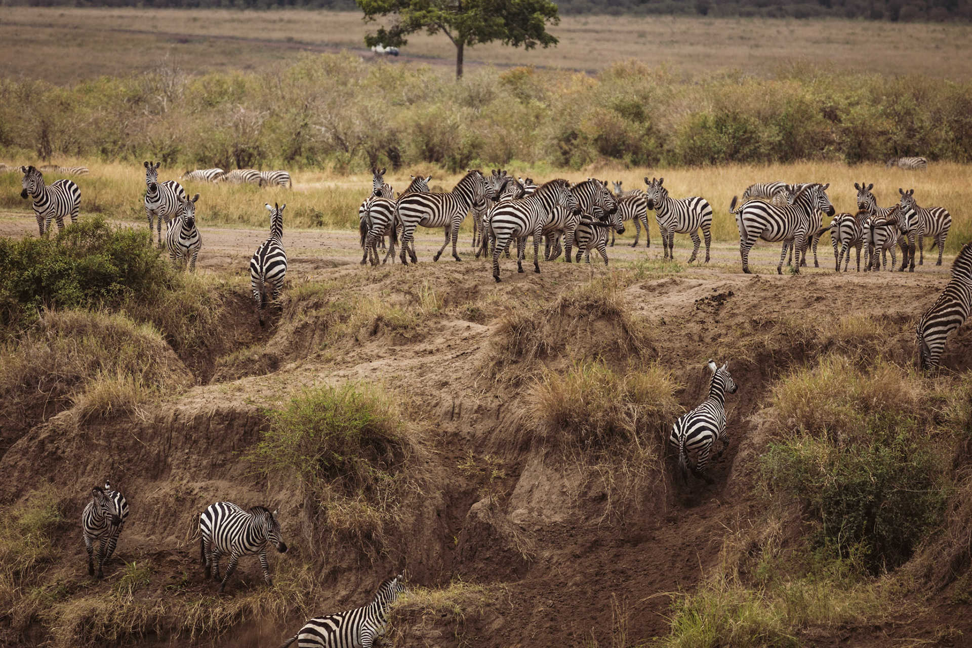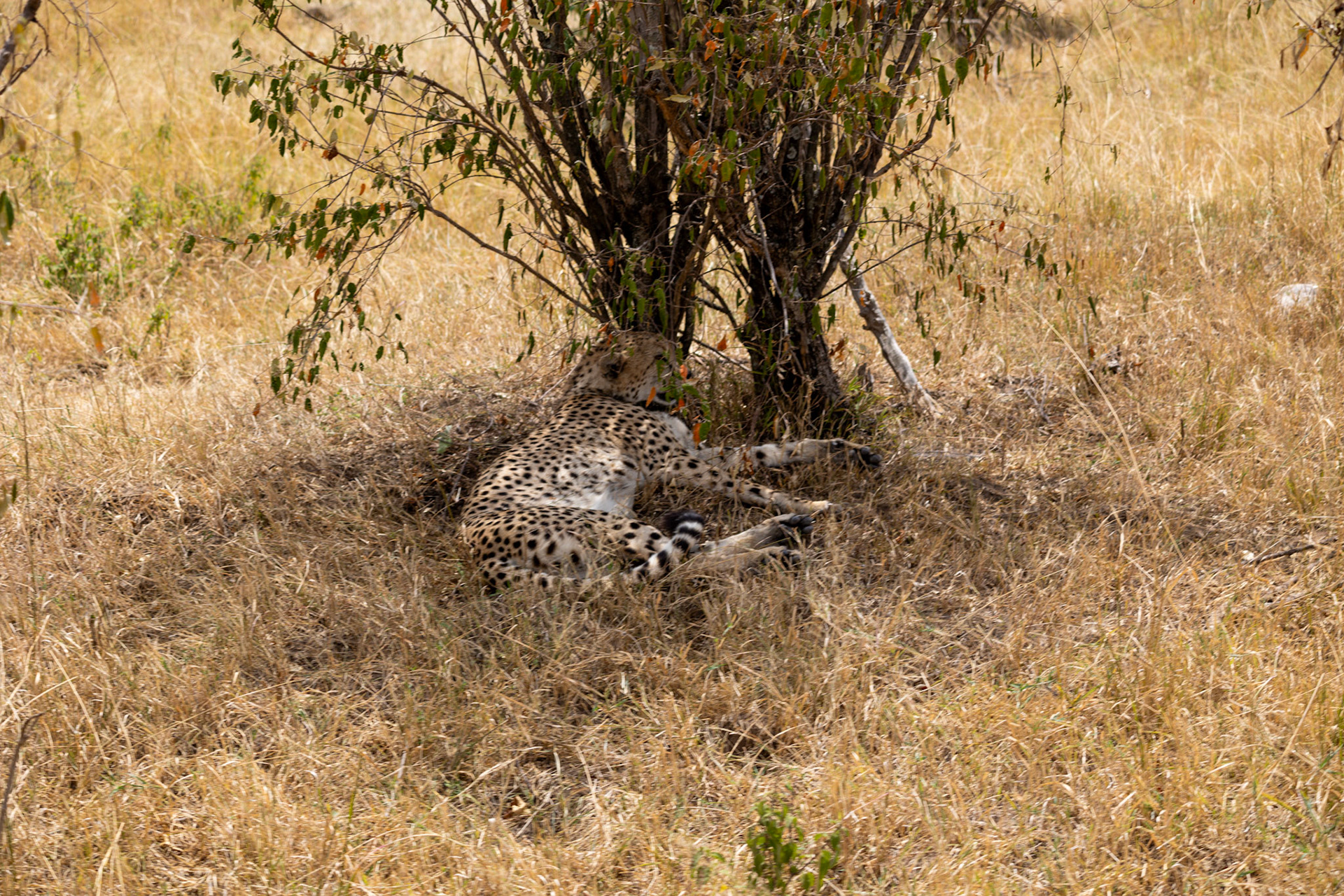 Endless horizons in Maasai Mara with a special mother and baby giraffe moment captured in its vastness.