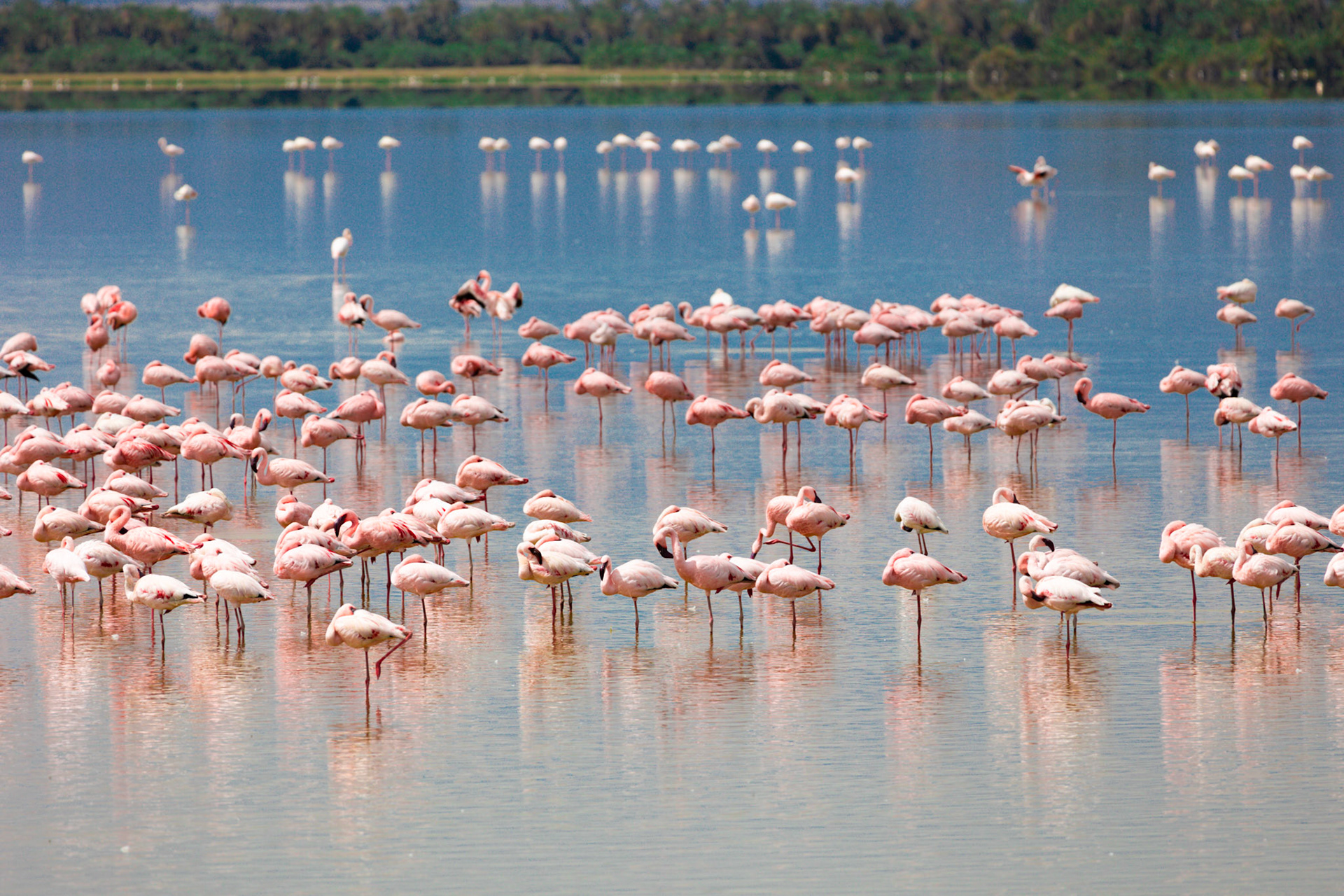 A congregation of pelicans in Kenya, perfectly at home in their watery haven. A serene snapshot of communal life in the wild.