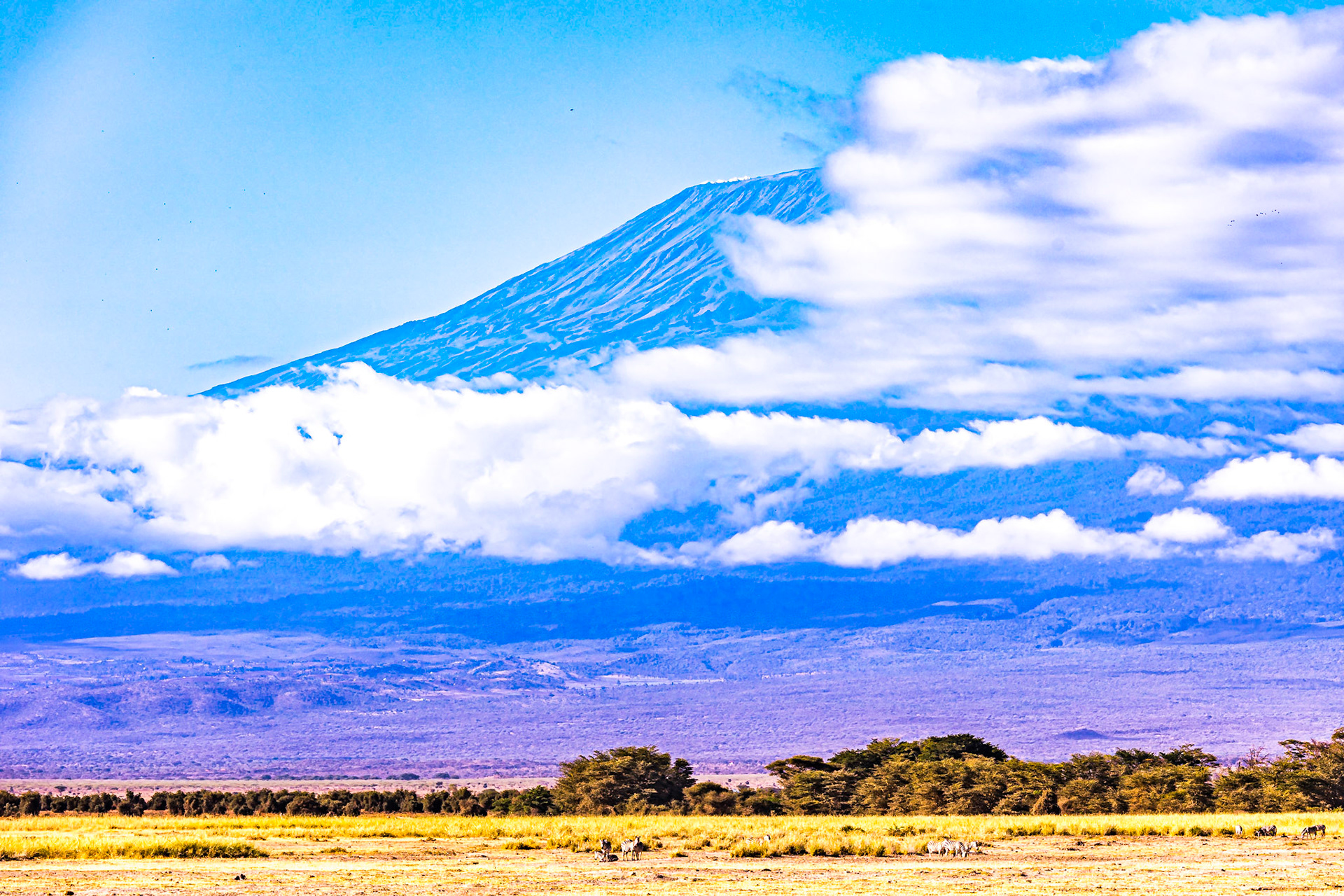 With its peak veiled in clouds, the majestic Mt. Kilimanjaro stands as a timeless backdrop to a rich tapestry of elephants, zebras, and various wildlife. These denizens of the plains, in their natural habitat, seem to pay homage to the grandeur of Africa's highest mountain.